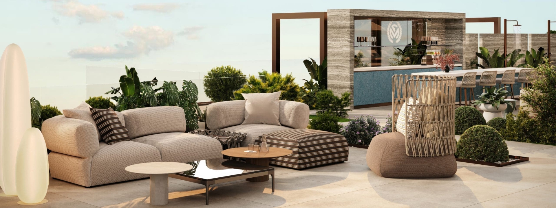 Апартаменты — от студий до трёхспальных резиденций — создают атмосферу уюта и гармонии. Интерьеры наполнены светом, изысканными материалами и мягкими морскими оттенками. Это не просто дома, а личные пространства, где современный дизайн встречается с безупречным чувством стиля.